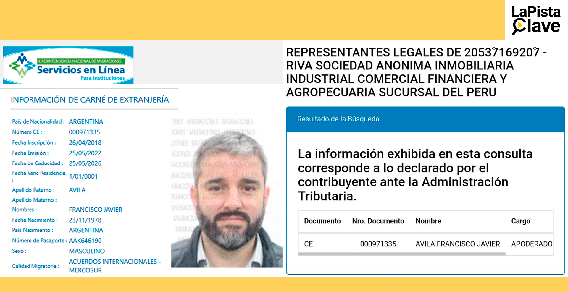 De acuerdo a información del portal web de la SUNAT, Francisco Javier Ávila es apoderado de la empresa Riva S.A Sucursal del Perú.